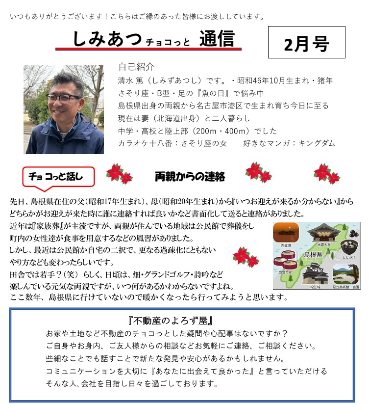 不動産・人・暮らしの縁結びが私たちの仕事です 住まい・テナント探しから土地活用・管理・トラブルまでお気軽にご相談下さい 不動産業界の常識にとらわれず、出会いを大切・未来へつなぐお手伝いをさせていただきます